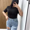 Top aderente a maniche corte con schiena in pizzo e chiusura annodata, che unisce comtort e un tocco raffinato e femminile.